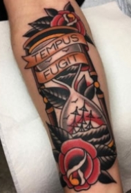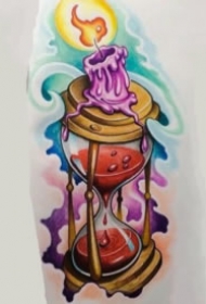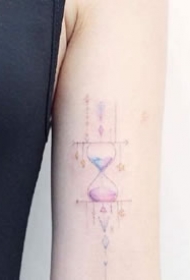 时间沙漏刺青 女生手臂上彩色的沙漏纹身图案