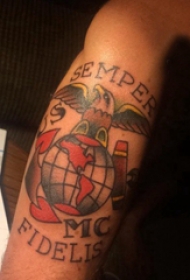 刺青老鹰抓地球 男生手臂上彩色的老鹰抓地球纹身图案