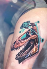 写实几何小臂恐龙骷髅纹身图片