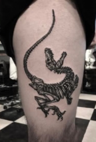 大腿霸王恐龙骨架纹身图案