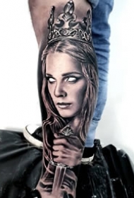 欧美写实风格的黑灰女郎人像刺青作品9张图片