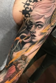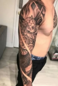 新传统风格的大花臂纹身图案作品图片