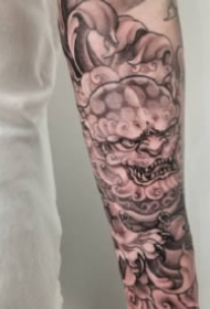 刺青新传统图片 新传统风格的一组包臂唐狮等纹身图案