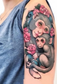 插画风格彩色可爱的猴子和字母手臂纹身图片