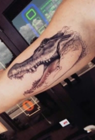 百乐动物刺青 男生手臂上树叶和鳄鱼纹身图案