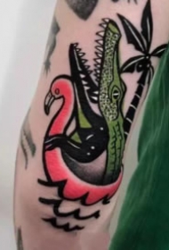 手臂old school卡通点刺彩色的鳄鱼与匕首纹身图片