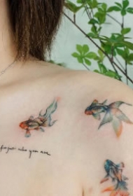 金鱼刺青 漂亮的9张唯美彩色小金鱼纹身图片