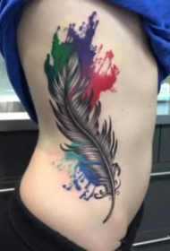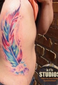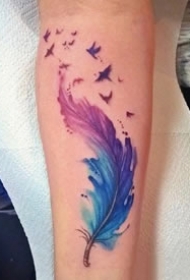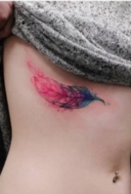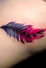 刺青 彩色羽毛 多款轻柔而又美丽的水彩羽毛纹身图片