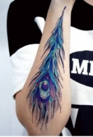 羽毛刺青图片 10张不错的孔雀彩色羽毛纹身图案