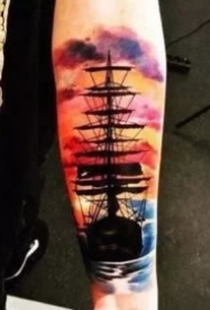 9款很漂亮的彩色大帆船纹身图片