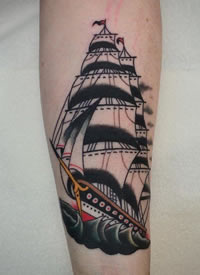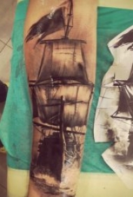Old School小臂帆船纹身图片