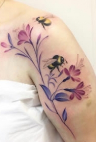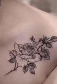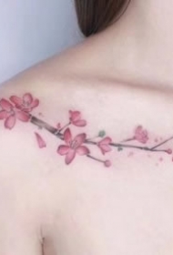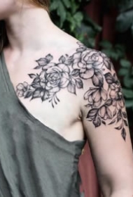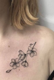 女孩子锁骨肩部的素花刺青图欣赏图片