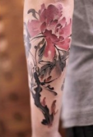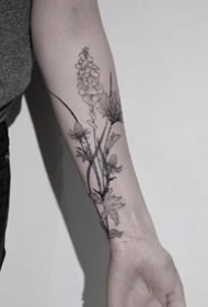 一组手臂上线条感极强的水墨植物花朵纹身图片