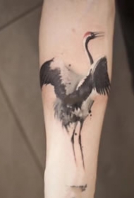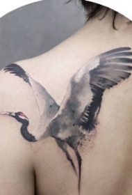 仙鹤刺青 9张水墨中国风的仙鹤纹身图案