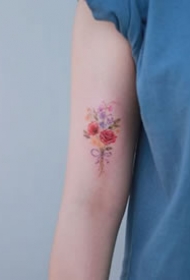 刺青图案花朵 适合女人漂亮的彩色的小花朵纹身图片