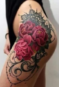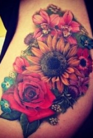 性感的一组女性臀部屁股上艳丽花朵纹身图片