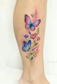 彩色植物颜料刺青女性喜欢的一组漂亮的花卉纹身图片