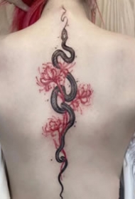 男生小腿上红黑撞色创意有趣图腾纹身图案