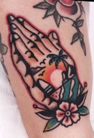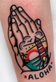 恋人一双漂亮的戴着手铐的祈祷之手纹身图片