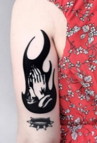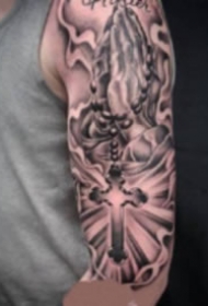 大臂可爱的白色鸽子和祈祷之手纹身图片