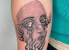 线条组成的涂鸦风格人脸纹身图案