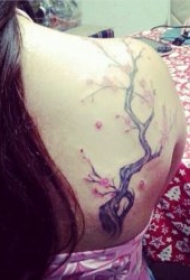 女背部刺青图 漂亮唯美的女生背部纹身图片
