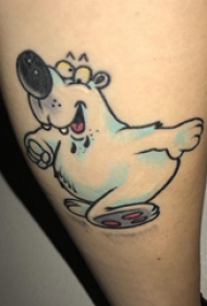 刺青卡通 女生大腿上彩色的小白熊纹身图案