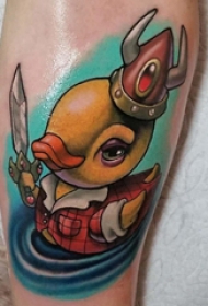 刺青卡通 女生小腿上彩色的橡皮鸭纹身图案