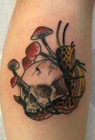 骷髅刺青 女生小腿上蘑菇和骷髅纹身图案