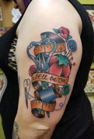 双大臂刺青 女生大臂上英文和针线纹身图案