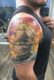 彩绘刺青 男生手臂上彩色的骷髅纹身图案