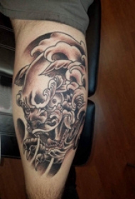 刺青浪花 男生小腿上黑灰的浪花纹身图案