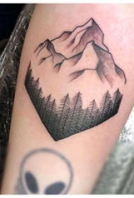 小山峰刺青 女生手臂上黑色的山峰纹身图案