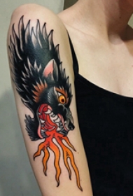 大臂刺青图 女生大臂上彩色的狼头纹身图案