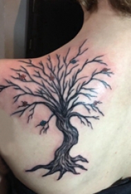后肩刺青 女生后肩上植物和骷髅纹身图案
