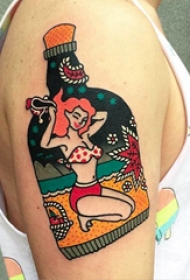 刺青卡通 女生手臂上彩色的卡通人物纹身图案