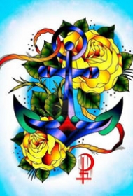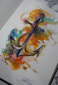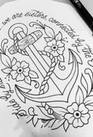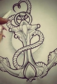 纹身吧船锚手稿图案大全图片