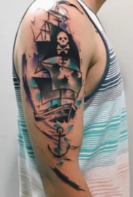 大臂上好看的点刺彩色水墨刺青作品9张图片