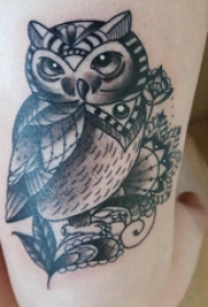 刺青猫头鹰 女生大腿上猫头鹰纹身图案