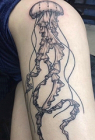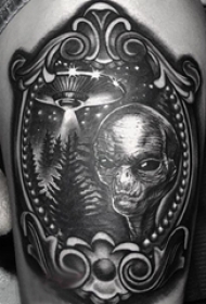 大腿传统刺青 女生大腿上飞碟和外星人纹身图案
