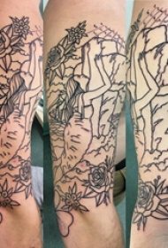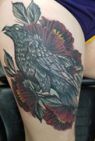 彩绘刺青 女生大腿上石头和花朵纹身图案