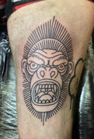 刺青大腿男 男生大腿上彩色的老虎纹身图案