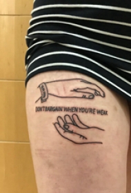 大腿传统刺青 女生大腿上英文和手纹身图案