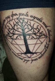 刺青大腿男 男生大腿上英文和建筑物纹身图案