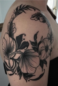 双大臂刺青 女生大臂上精致的花朵纹身图案