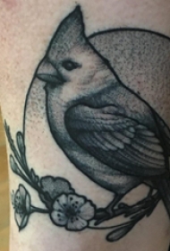 欧美小腿刺青 男生小腿上花朵和小鸟纹身图案