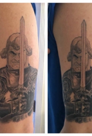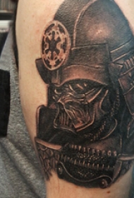 武士头盔刺青 男生大臂上黑色的武士纹身图案