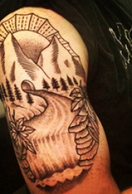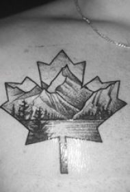刺青胸部男 男生胸部风景和枫叶纹身图案