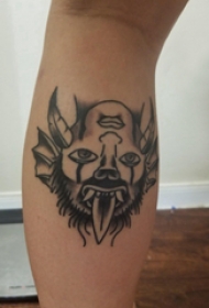 欧美拼接刺青 男生小腿上黑色的拼接人物纹身图案