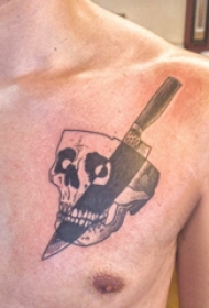 刺青胸部男 男生胸部匕首和骷髅纹身图案